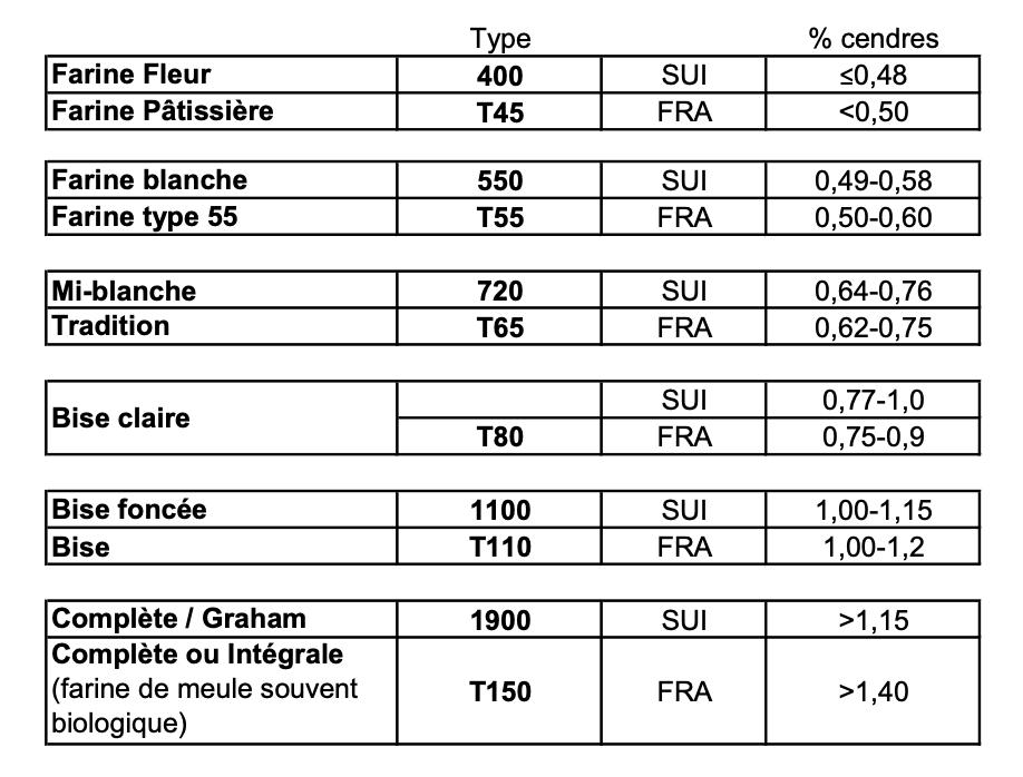 Vous trouverez chez nous, les farines suivantes en sacs de 25 Kg :